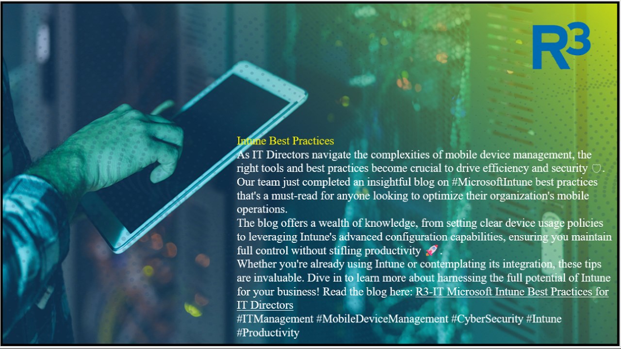 Intune Management for All Platforms: Say goodbye to silos. R3 extends its reach to Windows and macOS. Manage endpoints across the board, from laptops to tablets. Intune becomes your Swiss Army knife, simplifying management and enhancing user experiences. App Deployments with ABM and Google Play: R3 streamlines app deployments. Whether it’s Apple Business Manager (ABM) or Google Play, we ensure apps reach the right users hassle-free. Our security controls layer adds an extra shield, protecting data and privacy.