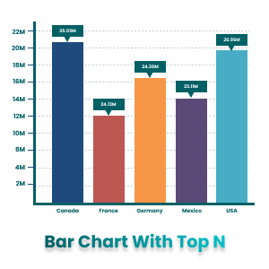 - Top N Feature: Allows users to select and display the top N items based on the numerical values of the bubbles or lines, enhancing focus on key data points.