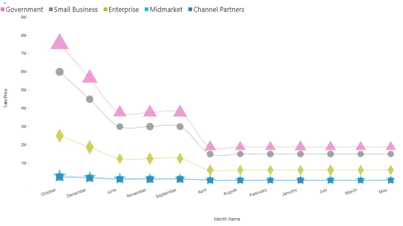 - Configurable Shapes: Each line in the chart connects data points represented by shapes. These shapes can be customized for each category, enhancing visual differentiation and making the chart more engaging.