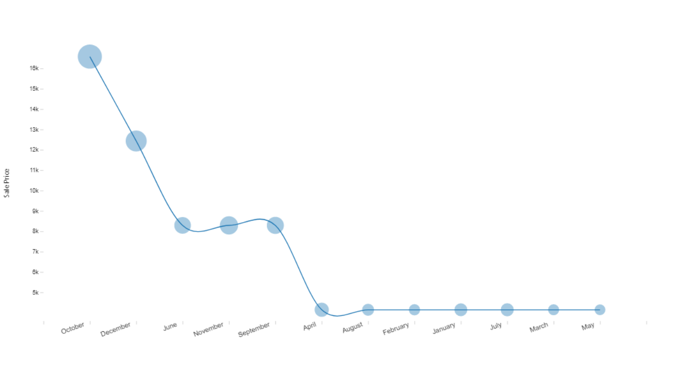 A Line and Bubble chart is a graphical representation that combines line and bubble elements to represent data points and trends in a visually distinct format. The line connects data points to display trends over time or categories, while bubbles vary in size to reflect a numerical field or measure.