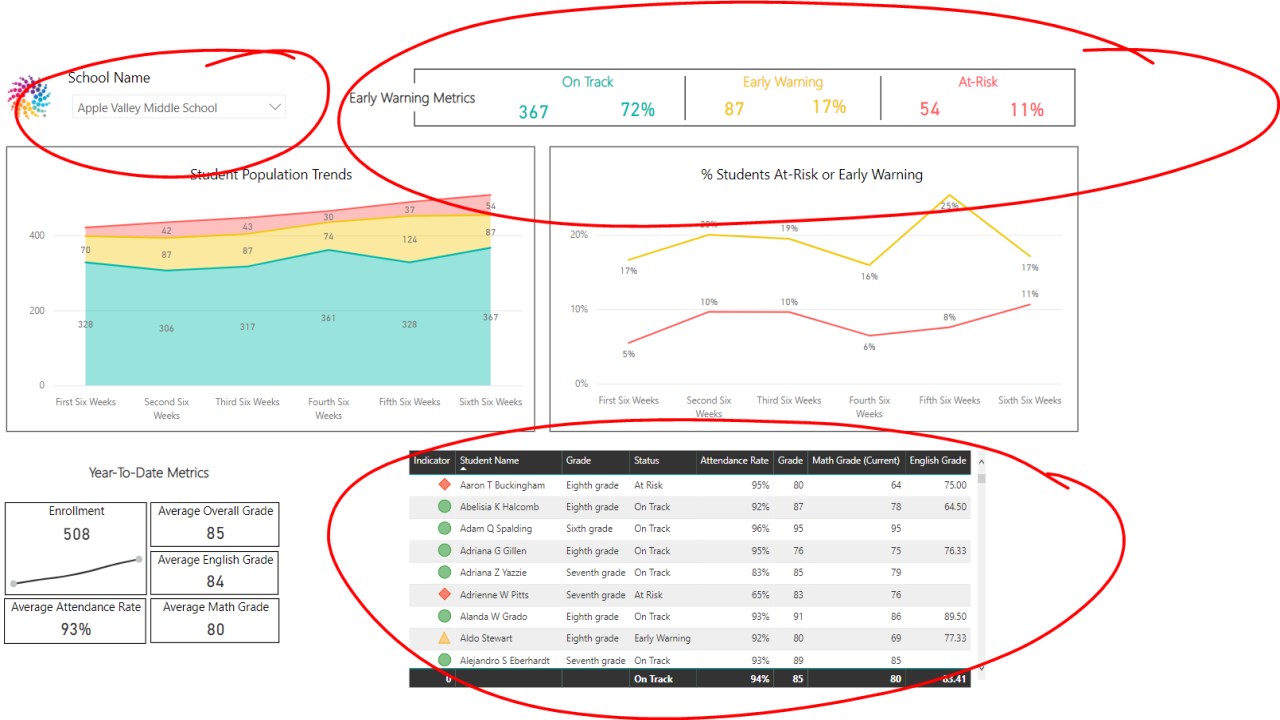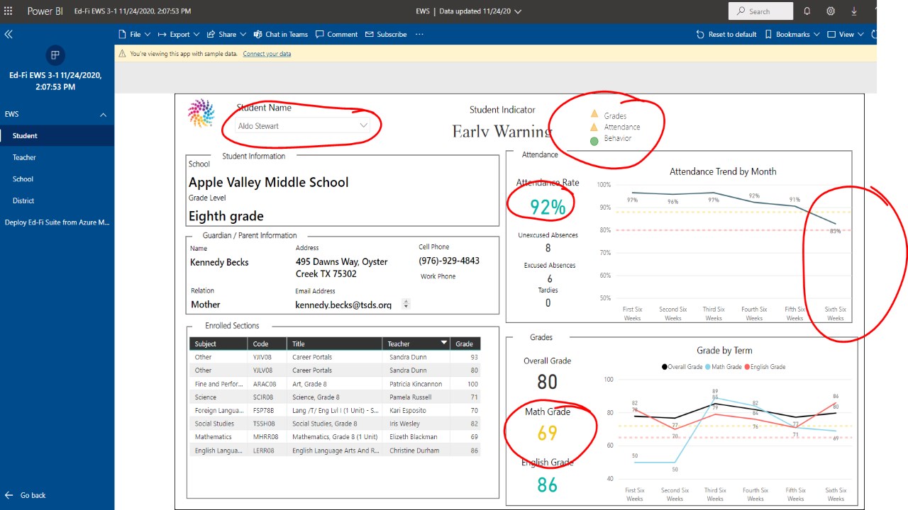 K-12 Early Warning System (EWS) analytics based on the Balfanz model and driven by Ed-Fi v3.2.